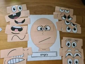 يقوم مقدم الرعاية بطباعة شكل وجه الانسان, وكذلك طباعة أشكال مختلفة من حركات العيون والفم ويطلب من الطفل أن يُعد تعبير ما بواسطة أن يطرح مقدم الرعاية أسئلة مثل هل يمكنك أن تجعل هذا الشخص غاضبا؟ وكذلك يسأله كيف سيكون شكل العين وشكل الفم وما هي العيون التي تتناسب مع شكل الفم.